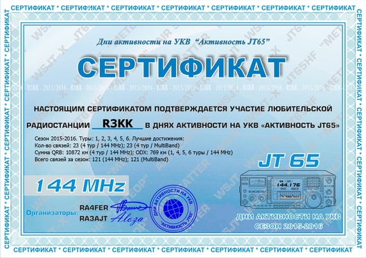 MyQSL / R3KK / Дипломы, сертификаты, свидетельства