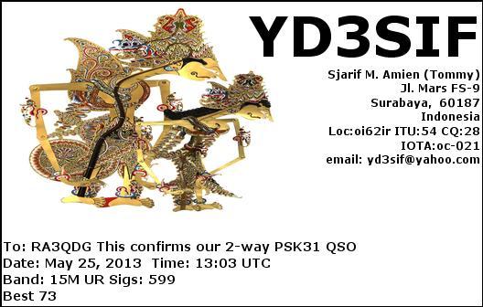 RA3QDG DE YD3SIF , PSK31 on 15M