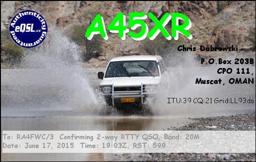 RA4FWC3 DE A45XR , RTTY on 20M