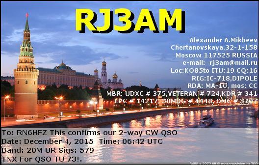 RN6HFZ DE RJ3AM , CW on 20M