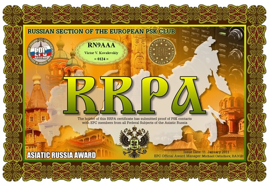 MyQSL / RN9AAA / Дипломы, сертификаты, свидетельства