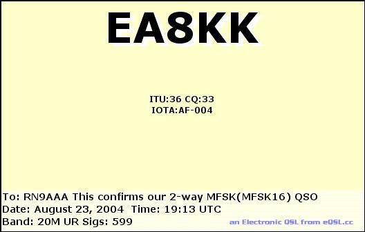 RN9AAA DE EA8KK , MFSK16 on 20M
