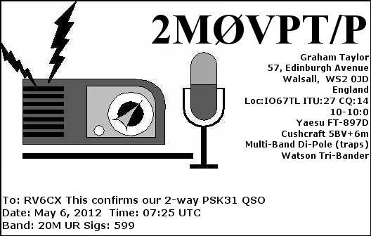 RV6CX DE 2M0VPT/P , PSK31 on 20M