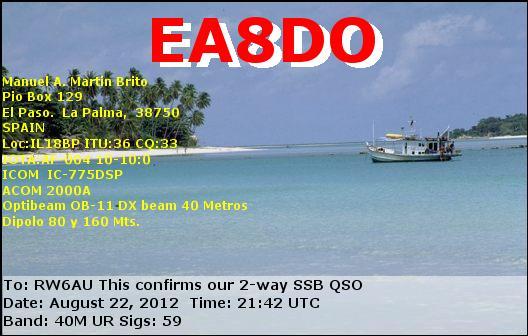 RW6AU DE EA8DO , SSB on 40M