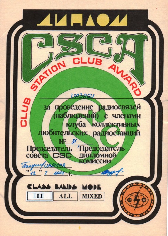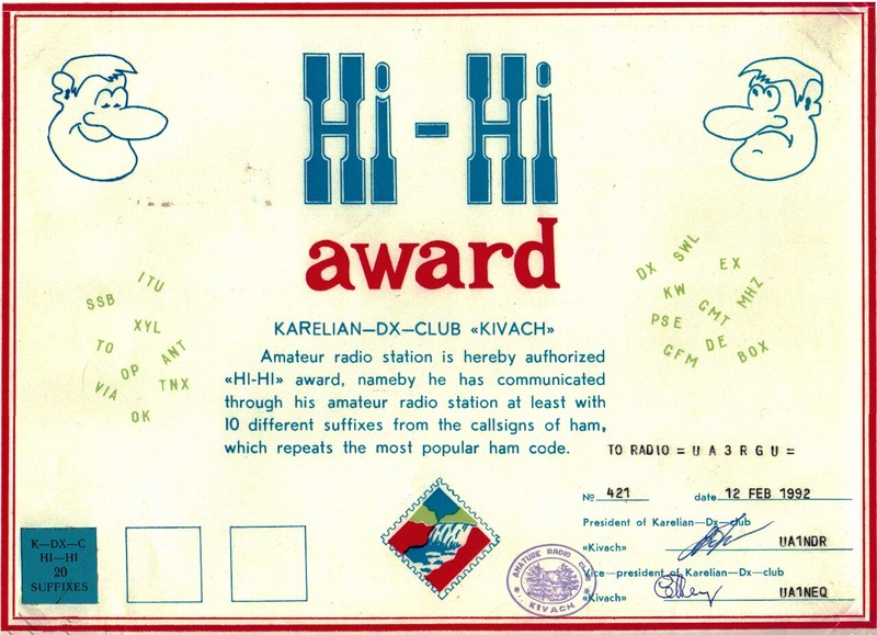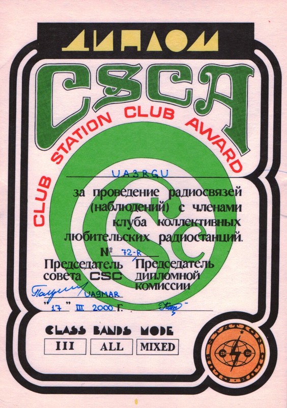 MyQSL / UA3RGU / Дипломы, сертификаты, свидетельства