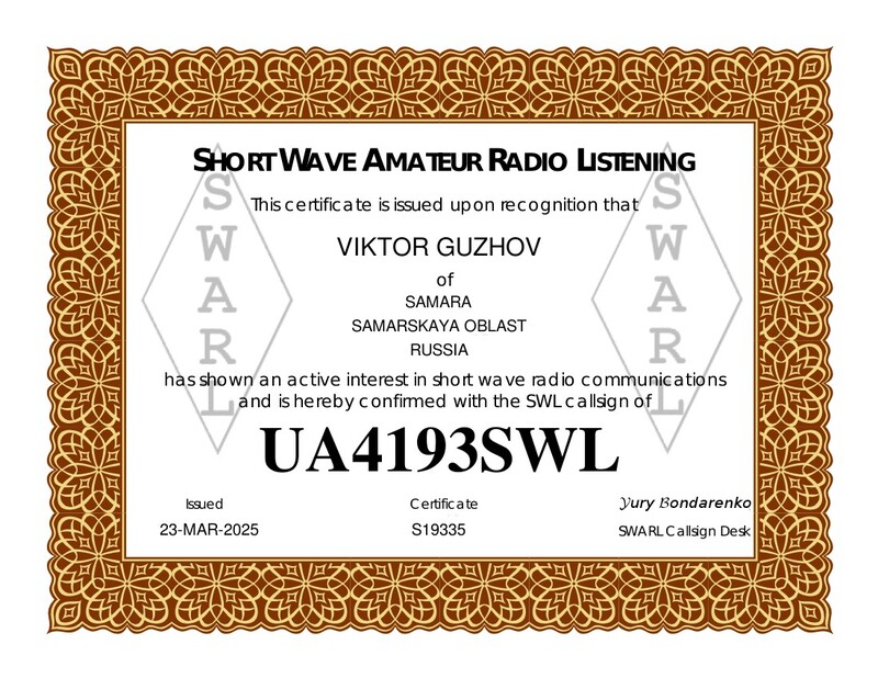 MyQSL / UA4193SWL / Дипломы, сертификаты, свидетельства