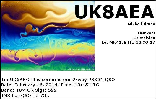 UD6AKG DE UK8AEA , PSK31 on 10M
