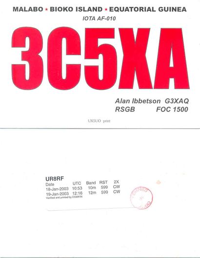 UR8RF DE 3C5XA , CW