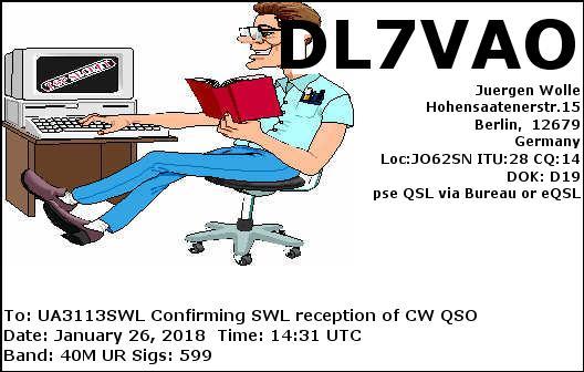ua3113swl DE DL7VAO , CW on 40M